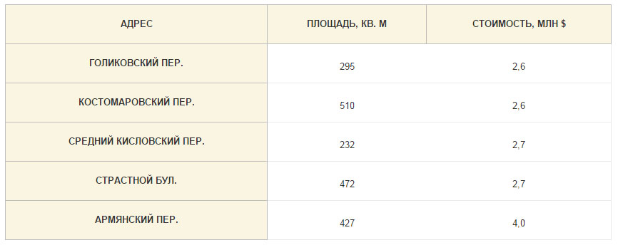Особняки, по версии специалистов IntermarkSavills, — это отдельно стоящие малоэтажные здания (до пяти этажей) в центре города ориентировочной площадью от 200 до 5–6 тыс. кв. м, чаще всего с собственной территорией, которые предлагаются для продажи целиком (для одного собственника). В большинстве случаев это памятники русской архитектуры конца XIX — начала XX века. Спрос и предложение не сходятсяВостребованными сегодня остаются московские особняки под реконструкцию, расположенные внутри Садового кольца, а также в Западном и Юго-Западном округах столицы, по цене до $3 тыс. за кв. м. Однако таких вариантов на рынке сейчас практически нет. Имеющиеся предложения оцениваются не менее чем в $5 тыс. за кв. м, говорит председатель совета директоров агентства элитной недвижимости Kalinka Group Екатерина Румянцева. Сделки по особнякам отличаются длительностью подготовки торга — поиск подходящих вариантов и переговоры могут вестись годами. Например, Росэнергобанк, который в 2010 году для размещения своей штаб-квартиры купил у «Дрезднер Банка» офис в Подсосенском переулке — усадьбу Прохоровых-Хлудовых, шел к этой покупке несколько лет. «Старинное здание многие расценивают не только как предмет для инвестиций, на возвратность которых могут понадобиться десятилетия, а как раритетную коллекционную вещь, имеющую хороший имиджевый эффект», — говорит первый заместитель председателя правления Росэнергобанка Марк Шрайбер. Росэнергобанк в усадьбе Прохоровых-Хлудовых По оценкам аналитиков компании Blackwood, в Москве насчитывается порядка 600 особняков (совокупным объемом 600–800 тыс. кв. м), используемых по коммерческому назначению. В настоящее время в продаже находится 254 особняка общей площадью 285 тыс. кв. м. Более 80% предложения сосредоточено в ЦАО. Основная часть предложения находится в районе Якиманка — Замоскворечье, где насчитывается порядка 18 объектов, объясняет руководитель отдела анализа и мониторинга рынка IntermarkSavills Анатолий Довгань. Кроме того, в этом районе выставлен на продажу один из самых доступных среди исторических особняков лот — памятник деревянного зодчества, дом Крицкого площадью около 300 кв. м, стоимость которого составляет $2,6 млн. Минимальный по площади особняк (230 кв. м) предлагается в Среднем Кисловском переулке в районе Арбата (стоимость $2,7 млн), максимальный — на Волхонке — более 6,36 тыс. кв. м ($100 млн). По абсолютному количеству объектов лидируют Остоженка и Пречистенка, но большинство из них находится в собственности — продается всего восемь особняков. Цены предложения в этой локации, по оценке IntermarkSavills, самые высокие — от $9 млн до $36,5 млн. Также значительный объем предложений приходится на Арбат и Тверскую улицу — по 13 и 14 объектов соответственно, у Чистых прудов продается девять особняков. В остальных районах центра есть единичные предложения. Большинство из них находится в категории нежилой недвижимости и предлагается главным образом под офисы. Сегодня появились инвесторы, которые устраивают в исторических зданиях музеи, художественные салоны, галереи и открывают доступ для их посещения («Галерея Жиро», усадьба Прохоровых-Хлудовых, усадьба Зубовых). «Дом на Добрынинском» (доходный дом 1914 год, архитектор Назарова) На Арбате есть два особняка, которые продаются под жилье. Это достаточно редкое предложение. «Если говорить о жилых особ